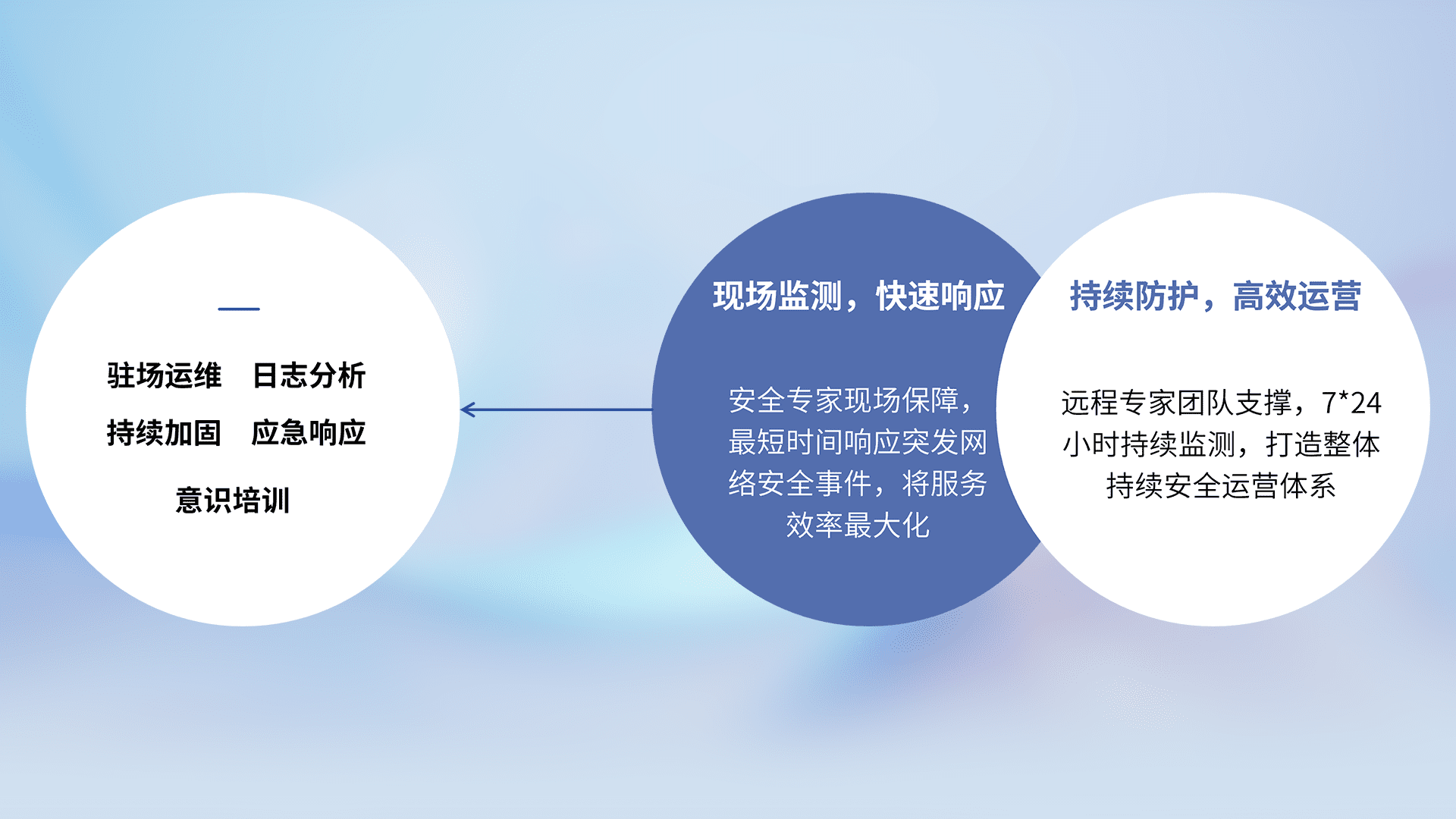 针对客户行业特性,,,,提供专属的一站式安全管理服务,,,,帮助客户全面感知网络空间威胁,,通过安全专家的线上、、、、线下防护支持,,实现风险闭环,,将安全保障常态化,,,为客户打造常态化安全运维运营服务。。